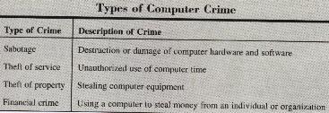 The unique threat of computer crime is that criminals often use computers to conceal not only their own identities but also the existence of the crimes. Law officers worry because solving computer crimes seems to depend on luck. Many such crimes are never discovered because company executives do not know enough about computers to detect them. Others go unreported to avoid scaring customers and stockholders. Many reported crimes do not result in convictions and jail terms because the complexities of data processing mystify most police officials, prosecutors, judges, and jurors. For a summary of the types of computer crimes, see the table below.